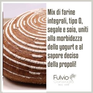 Mix di farine integrali selezionate, segale e soia, unite alla farina di grano tenero tipo “0”, con yogurt bianco e propoli.
